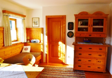 Jogl-Bauerntisch und antiken Bauernmöbeln wie dem alten Schrank